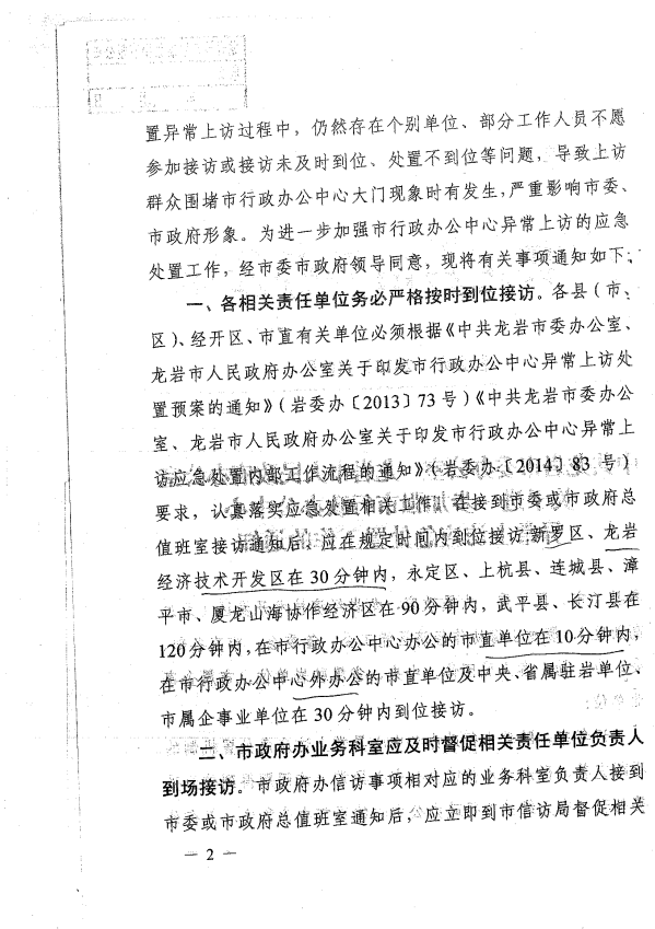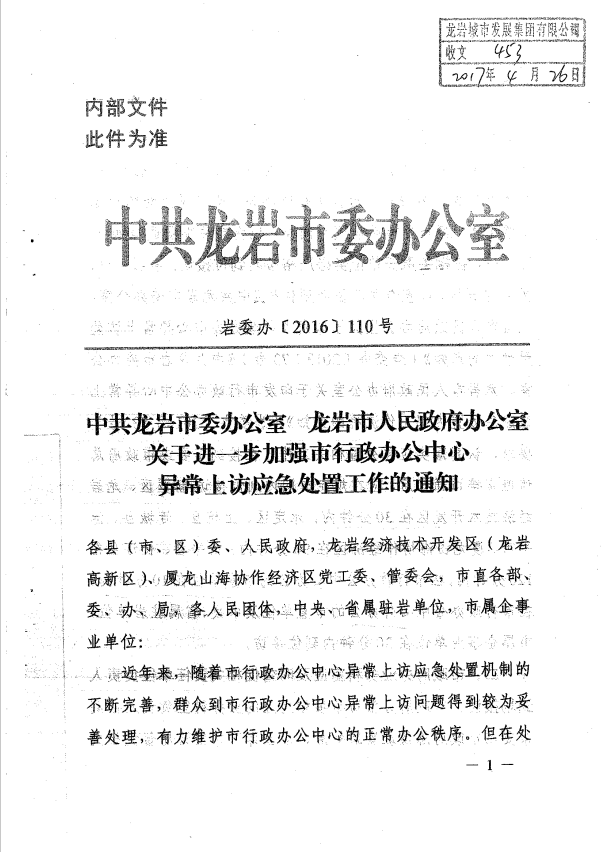 市委辦關(guān)于進(jìn)一步加強市行政辦公中心異常上訪應(yīng)急處置工作的通知(巖委辦【2017】110號)